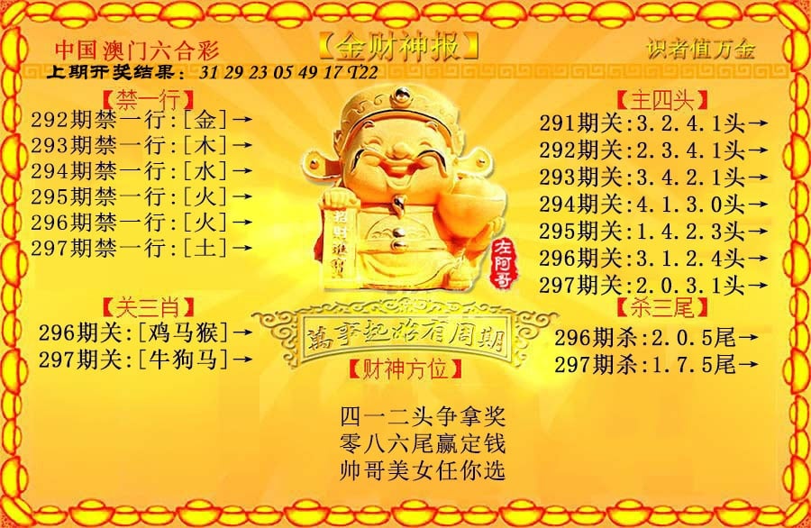 296期:千金难买 【单双各三肖】继续帮助深陷水深火热中的彩民